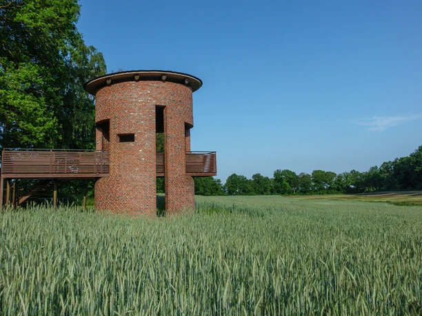 - Landschaftsfenster Geestrand: Vom Turm aus schaut man in Richtung Wesermarsch. Hier ist der bis zu 20 Meter große Höhenunterschied des Landschaftsüberganges von der Ammerländer Geest zur Marsch der Weser auf eindrucksvolle Art erlebbar.